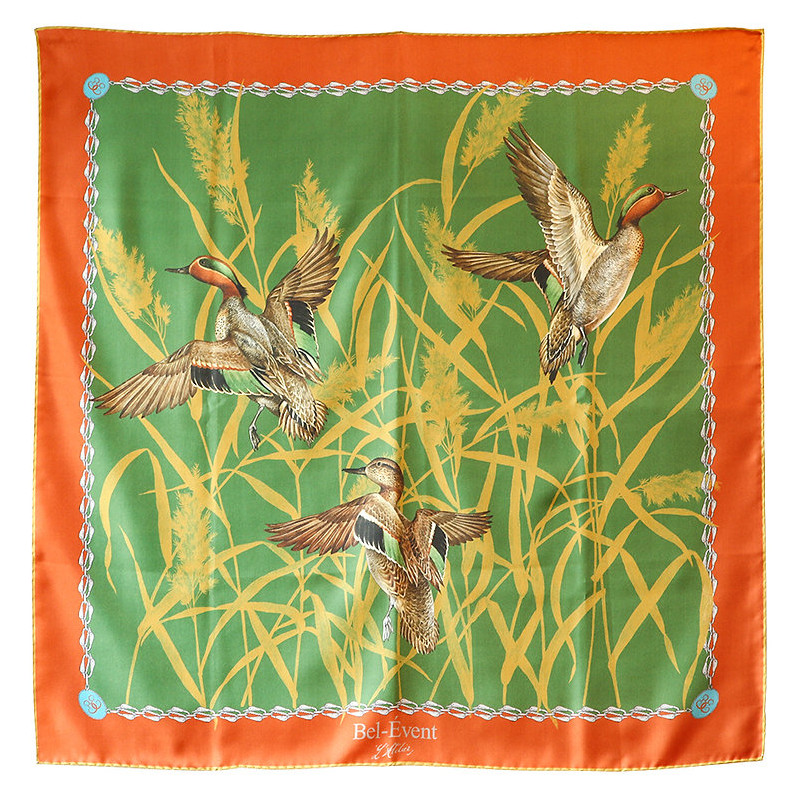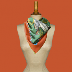 La collection exclusive des "sarcelles dans leur envol" a été dessinée dans l'atelier du Bel-Event en Normandie et imprimée à Côme chez l'un des plus grands professionnels de la mode italienne. Les foulards sont ensuite cousus à la main à Paris dans un des derniers ateliers traditionnels de haute couture. Un accessoire unique à l'allure romantique qui saura embellir tous les styles.
