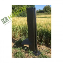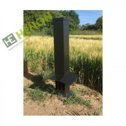 L’Agrainoir métallique Anti Sanglier d'une contenance de 25 litres est entièrement fabriqué en tôle de 15/10, il et pivote sur un axe métallique à 360°. Cela lui permet de résister aux attaques des sangliers et de préserver le grain ou le blé pour nourrir le petit gibier. L’Agrainoir métallique Anti Sanglier se compose d’un piquet que l’on enfonce dans le sol, il va servir de socle et d’axe à la borne. La hauteur du piquet est 1.4m. On peut renforcer le piquet à l’aide d’un tube plein. On glisse ensuite dans l’axe : la borne, qui mesure 15 cm x 15 cm intérieur Sur le devant et les côtés une ‘casquette ‘ vient protéger l’ouverture de la pluie pour éviter au grain d’être mouillé. Cette casquette dépasse de 30 cm sur le devant.