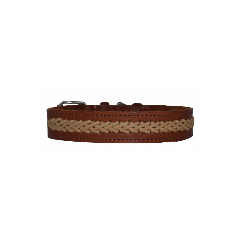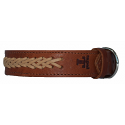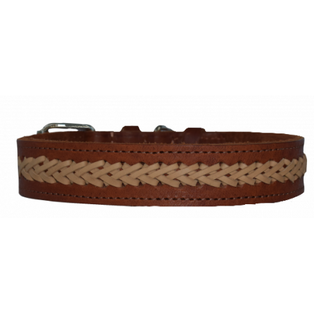 Ce collier pour chien est en cuir de vachette, doublé d'accessoires en acier inoxydable. Le tissage est fait à la main.