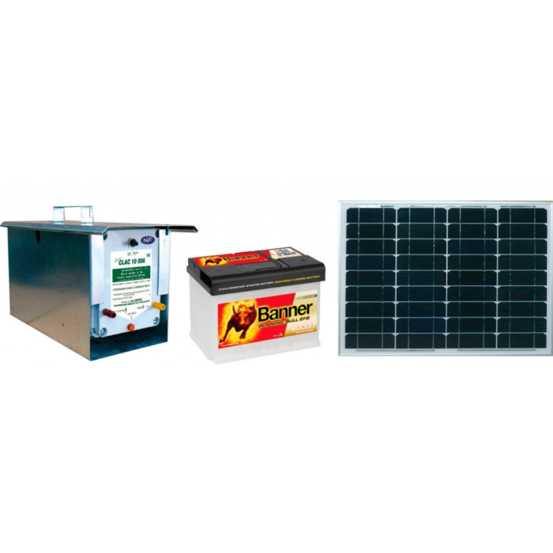 KIT SOLAIRE panneau 50W + 1 régulateur+1 batterie 60A +1 électrificateur tôle