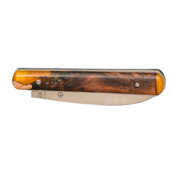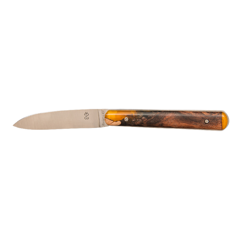 Le Franc est un couteau inspiré d’une forme longiligne que l’on retrouve souvent dans les Arts de la table à la française, ce couteau pliant offre ainsi une bonne prise en main franche et agréable.