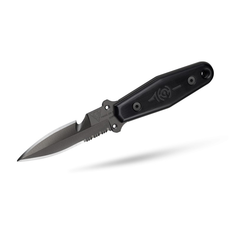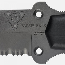 Son nom vient de la fameuse Passe-en-s de Mayotte, site de plongée sous-marine remarquable. Fait pour la plongée et la chasse sous-marine, la lame à double tranchant est dotée d'une goutte d'eau pour couper filets, cordelettes, lignes...
