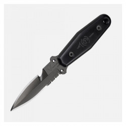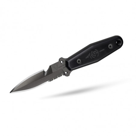 Le poignard de chasse sous-marine Avanona Passe-en-S bénéficie d'un manche noir en micarta, particulièrement agréable à manipuler mais surtout très résistant face aux variations de température. Il mesure environ 115mm de long, et intègre un trou en bout pour y passer un cordon ou un lacet. Pour pouvoir emporter toujours très facilement le Passe-en-S Avanona, un étui est également présent, il peut être positionné verticalement ou horizontalement sur de nombreux supports (ceinture, bretelle, sangle, gilet tactique). Son autre atout indéniable, c'est qu'il est auto-aiguisant, autrement dit il aiguise la lame du couteau à chaque entrée/sortie de l'étui.