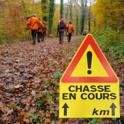 Message clair : "chasse en cours" inscrit en caractères gras pour une communication efficace.