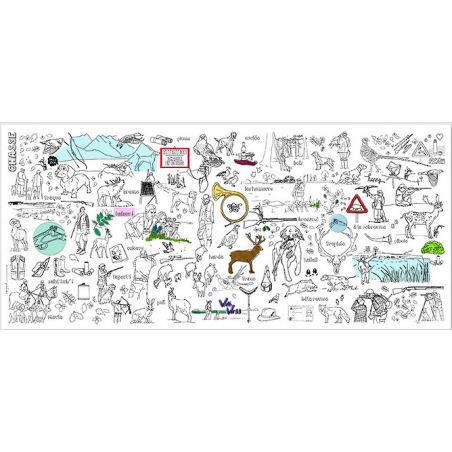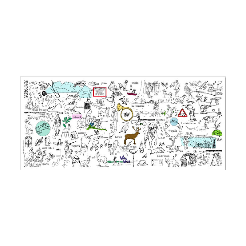 Coloriage rempli de détails rappelant l'univers de la chasse. Chaque détail a été pensé et recherché afin de faire vibrer les passionnés et d'amener les novices à la découverte de ce monde.