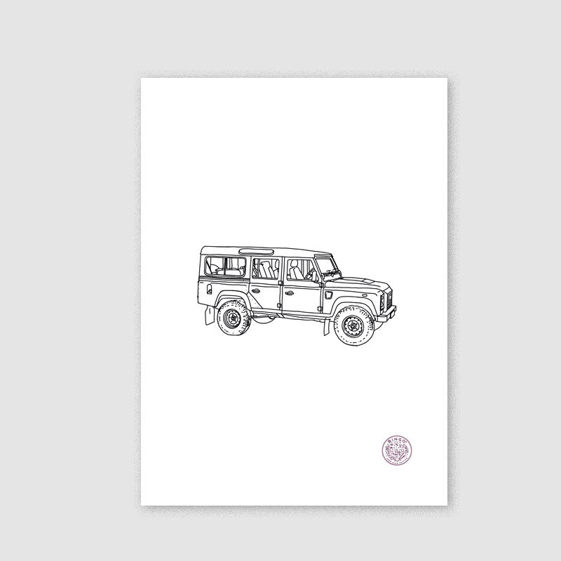 Une illustration représentant le mythiques Land Rover Defender.