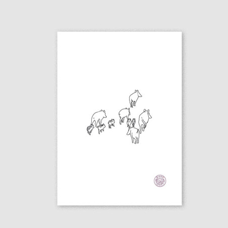 Une illustration représentant un sanglier et ses marcassins.