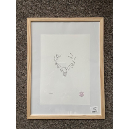 Une illustration encadrée représentant un massacre de cerf.