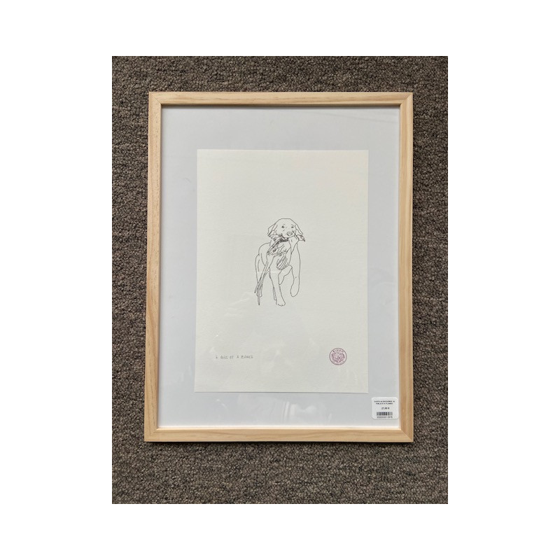 Une illustration encadrée représentant un animal, un détail ou une scène de chasse.