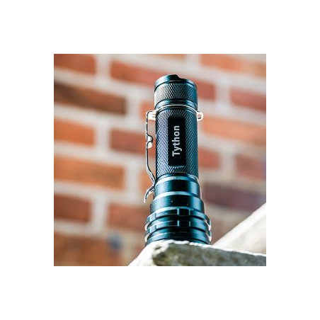 Cette petite lampe torche (12cm) de 1 600 lumens pour une portée de 450m possède une autonomie maximum de 24h. Son alliage en aluminium T6 anodisé vous assure une résistance dans les pires conditions. Cette lampe torche compact dispose de 8 modes d’éclairage et d’un interrupteur intelligent placé à l’arrière de la lampe.