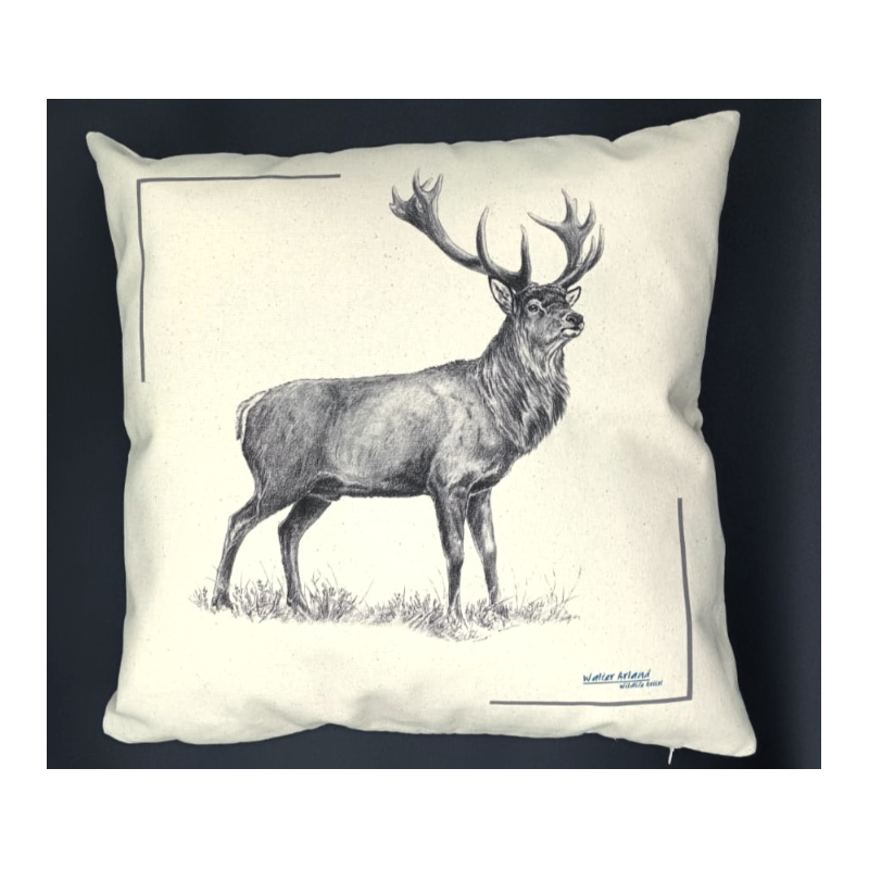 "Etude de Bécasse couleur" et "Cerf" 100% coton, 50 x 50 cm avec garniture intérieure en ouate et polyester, signés par l'artiste naturaliste Walter Arlaud