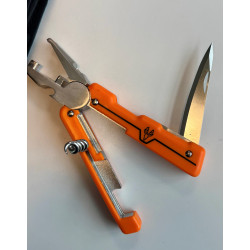 Cette pince multifonction, livrée avec son étui pratique et accroche ceinture, est un outil indispensable pour les chasseurs. En plus de sa fonction principale permettant de cocher les bracelets de gibier grâce à des encoches dédiées pour le numéro et le mois, elle intègre un couteau, un tire-bouchon et un décapsuleur pour une utilisation polyvalente sur le terrain.