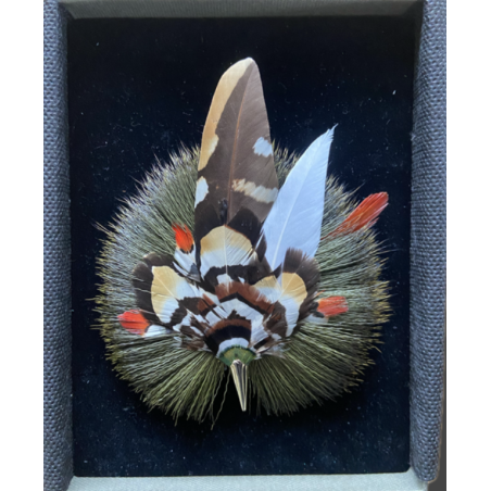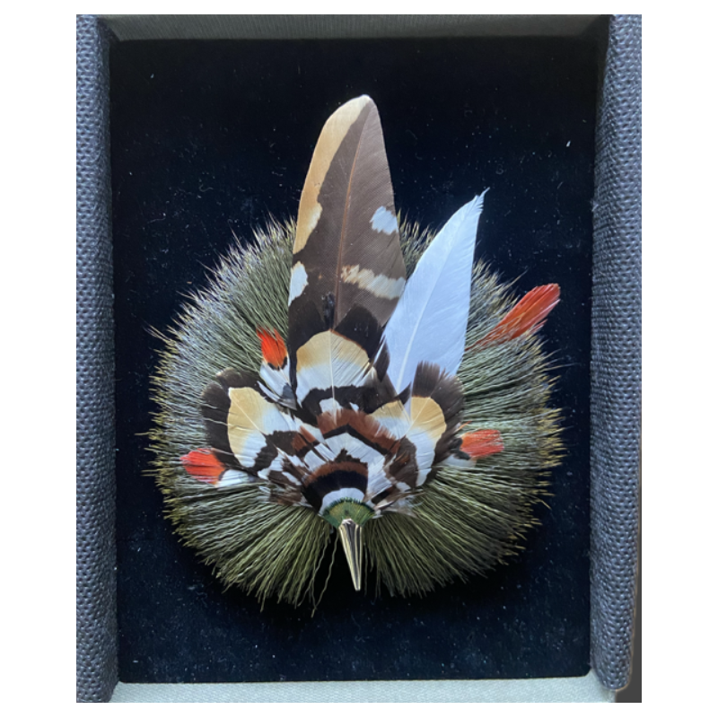 Fascinée par le jeux des correspondances des plumes naturelles entre coloris, graphisme, formes et volumes, elle révèle leur essence sans les dénaturer en leur offrant de nouvelles vies...