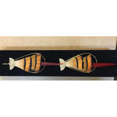 Fascinée par le jeux des correspondances des plumes naturelles entre coloris, graphisme, formes et volumes, elle révèle leur essence sans les dénaturer en leur offrant de nouvelles vies...