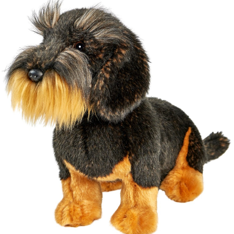 Le Teckel à poil dur est un chien doté d’une grande intelligence. Il est déterminé, joueur, plein de joie de vivre et a la réputation d’être très attaché à ses maîtres. La petite bouille d’amour de cette peluche teckel à poil dur ne vous laissera pas de marbre, mais on vous le dit, elle vous coûtera moins d’énergie que le vrai chien !