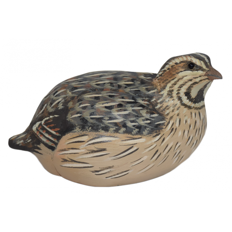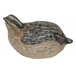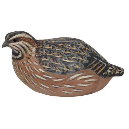 La caille des blés fait partie du petit gibier prisé des chasseurs de migrateur en début de saison. Cette sculpture en bois brut ravira les passionnés par sa finesse, sa qualité et son réalisme poussé à l'extrême tant sur l'attitude de l'oiseau que sur sa posture. Le créateur affectionne tout particulièrement les bois rares et précieux et veille ainsi à sélectionner les meilleurs fournisseurs pour obtenir des variétés de bois surprenantes.