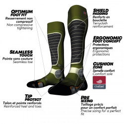 Le modèle Hunting Outlast® a été développé pour offrir un parfait équilibre entre finesse et protection thermique grâce à la présence de fibres Outlast® positionnées dans la semelle le talon et les pointes.