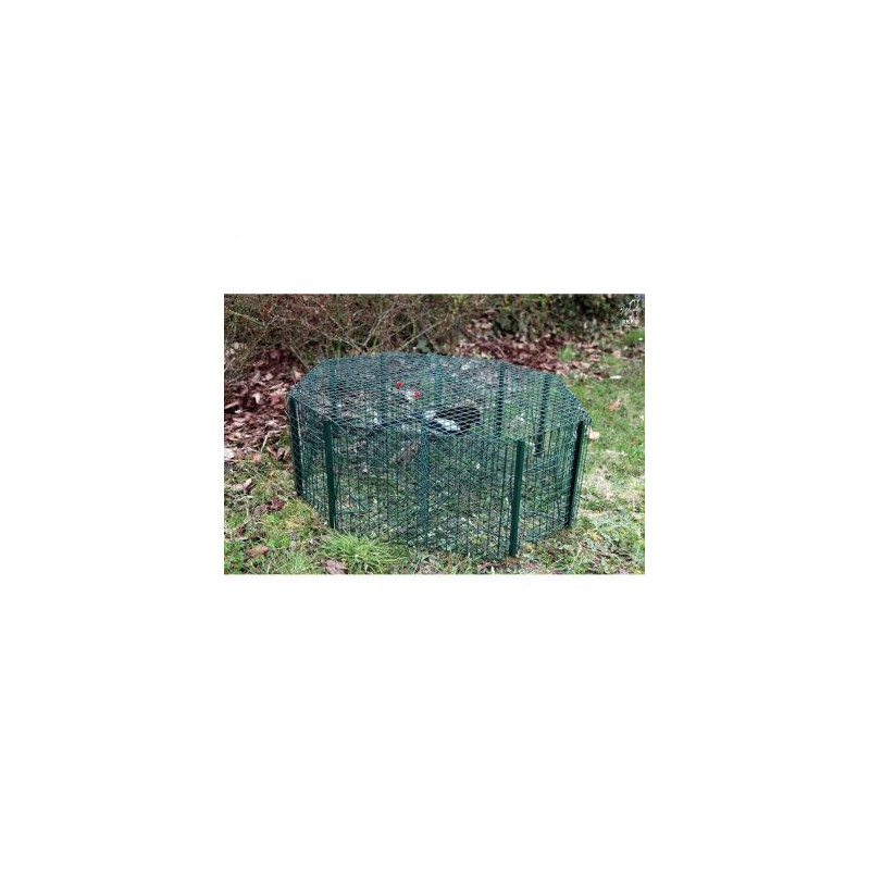 Piège a pie de forme octogonale composée de 4 compartiments de capture et un compartiment central permettant de mettre l’appelant.