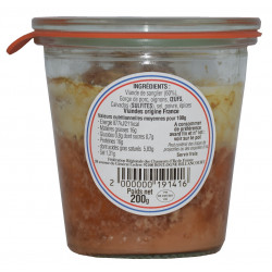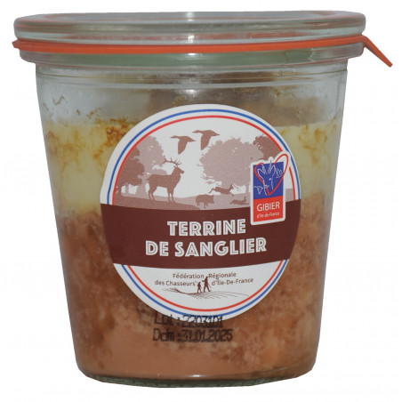INGRÉDIENTS: Viande de sanglier (60%), gorge de porc, oignons, ŒUFS, calvados (SULFITES), sel, poivre, épices.