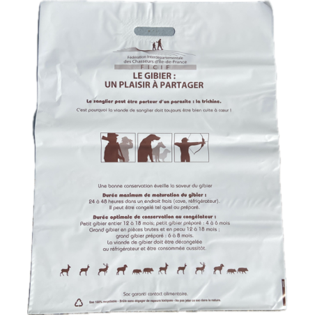 Avec le Sac Venaison en lot de 2 lots de 25, vous disposez de l'équipement parfait pour la conservation de votre chasse, que ce soit sur le terrain de chasse ou à la maison.
